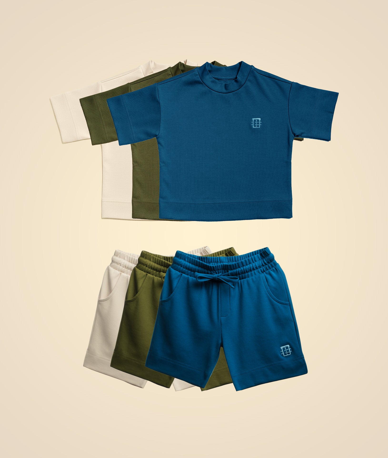 Our signature short sleeve set, curated in all three core colors.